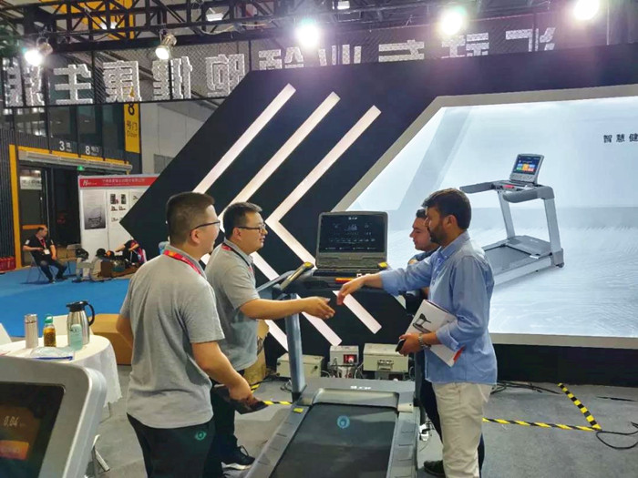 5月23日,2019年中国国际体育用品博览会盛大开幕,汇祥公司携跑步机MASTER系列Q6、KNIGHT系列K5、健身车T9及系列综合力量器械等多款新品亮相体博会,03F005展位,全套智能智慧健身设备受到行业和健身爱好者的广泛关注和认可。